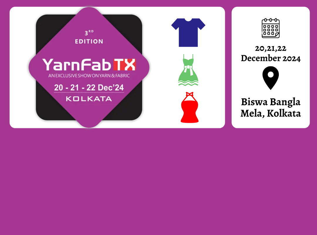 YarnFabTx has been playing a key role in spreading the technological revolution in Eastern region of India. Kolkata textile industry plays a very important role in the economy of the capital city of the State of West Bengal. This fair can play as an important fair for your garment manufacturing business’, East India Expansion. This […]